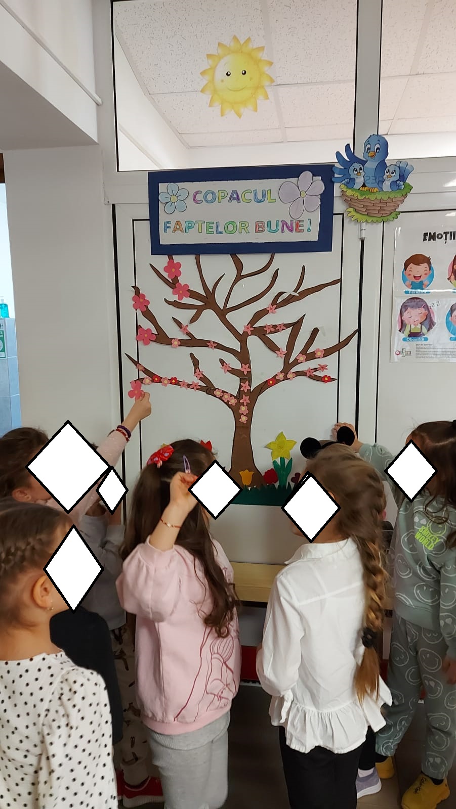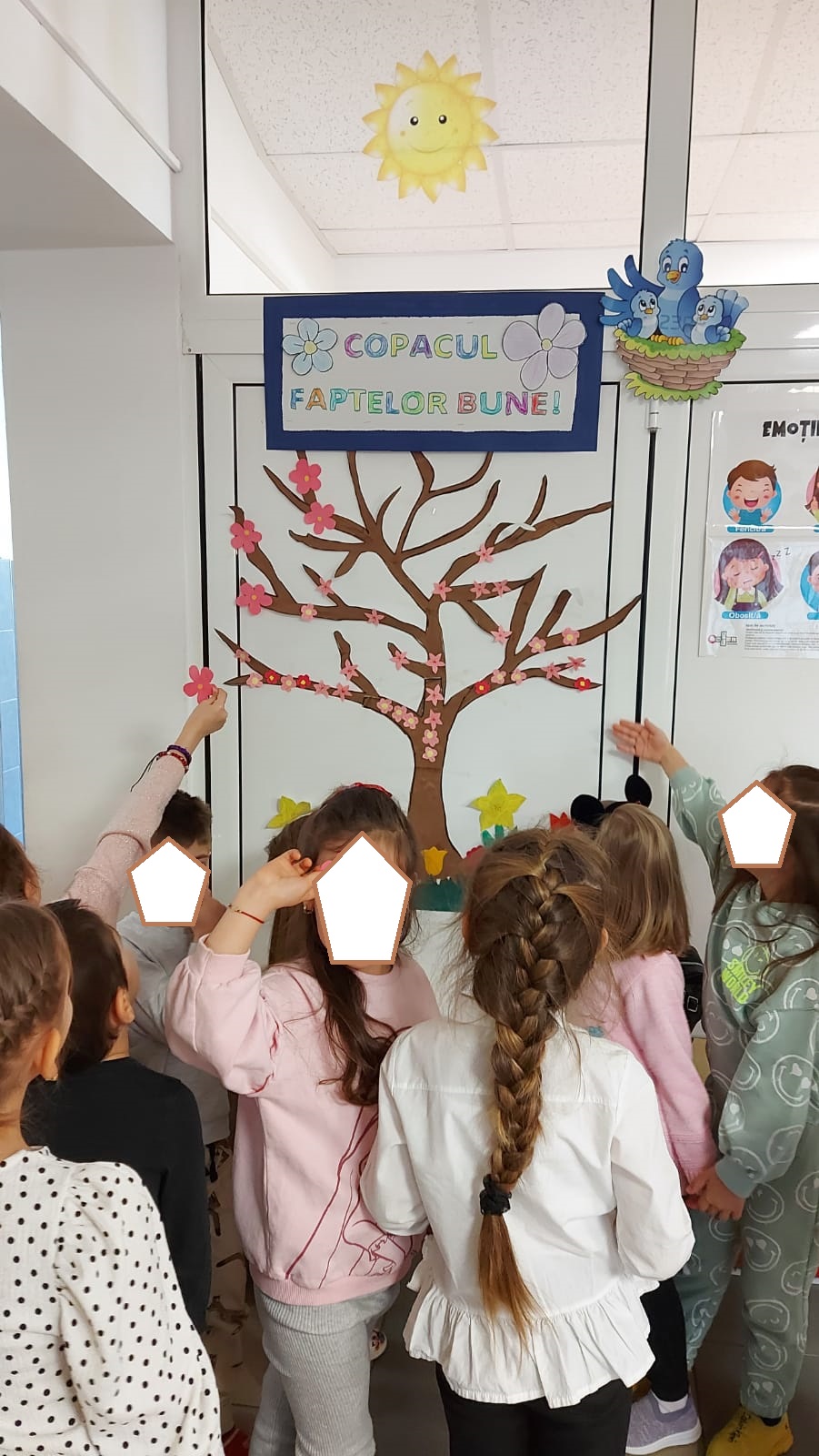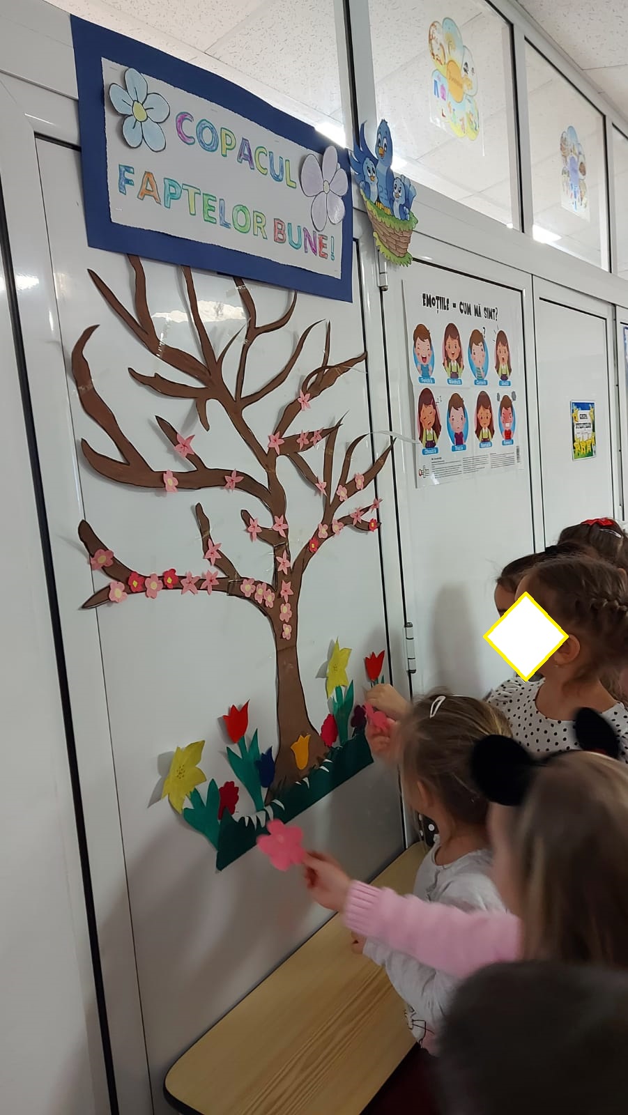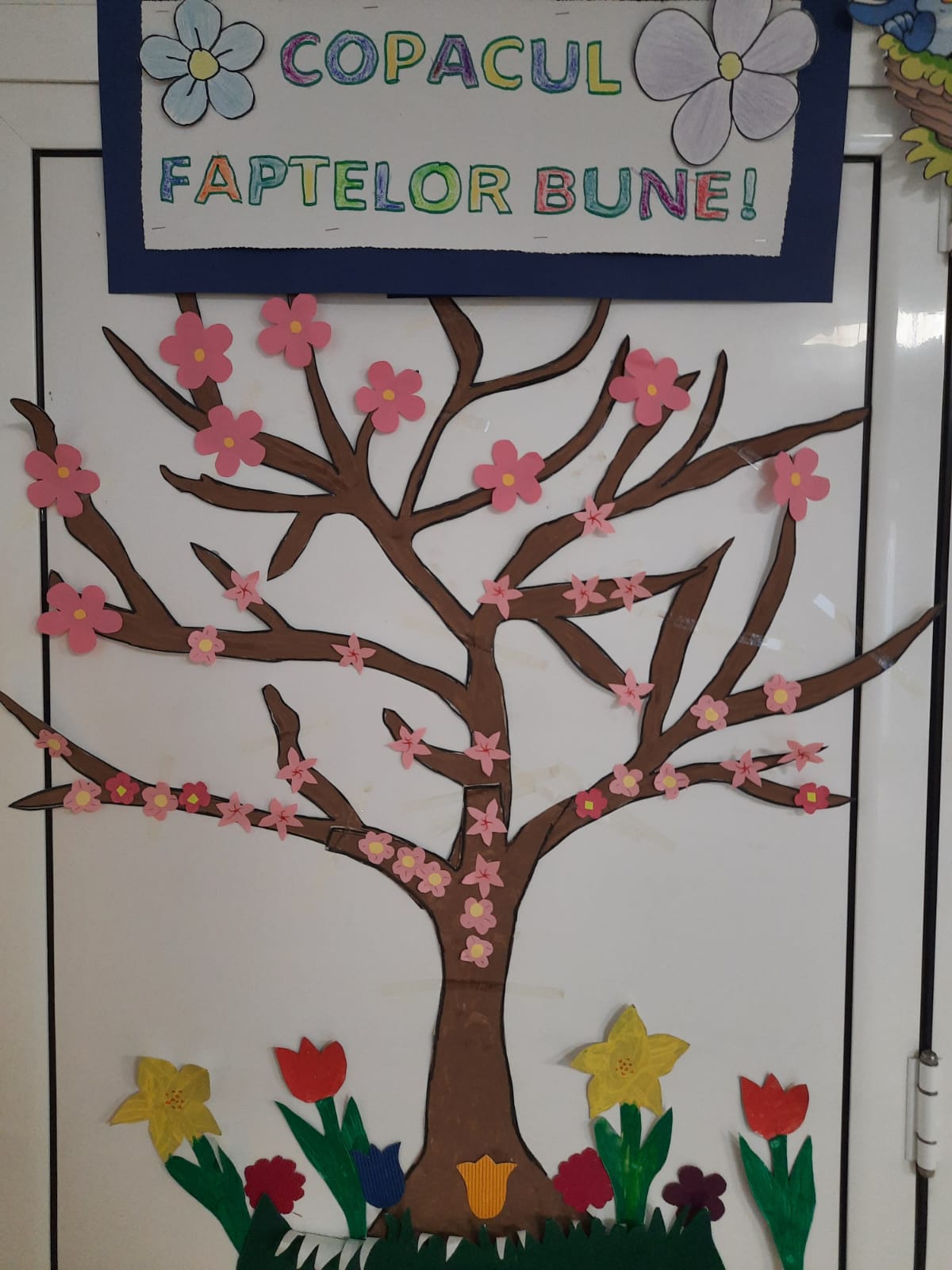 În acest context, Colectivul grădiniței noastre își propune ca, împreună cu preșcolarii, să realizeze cât mai multe fapte bune care se vor reflecta prin așezarea unor floricele în ,,Copacul faptelor bune” ce este expus în holul unității. Acest copac va înflori în această primăvară datorită unei serii de comportamente/ fapte menite să educe caracterul tuturor. Cu siguranță Copacul nostru va fi înmiresmat și cu arome primăvăratice ce vor cultiva bunătate în jurul nostru.