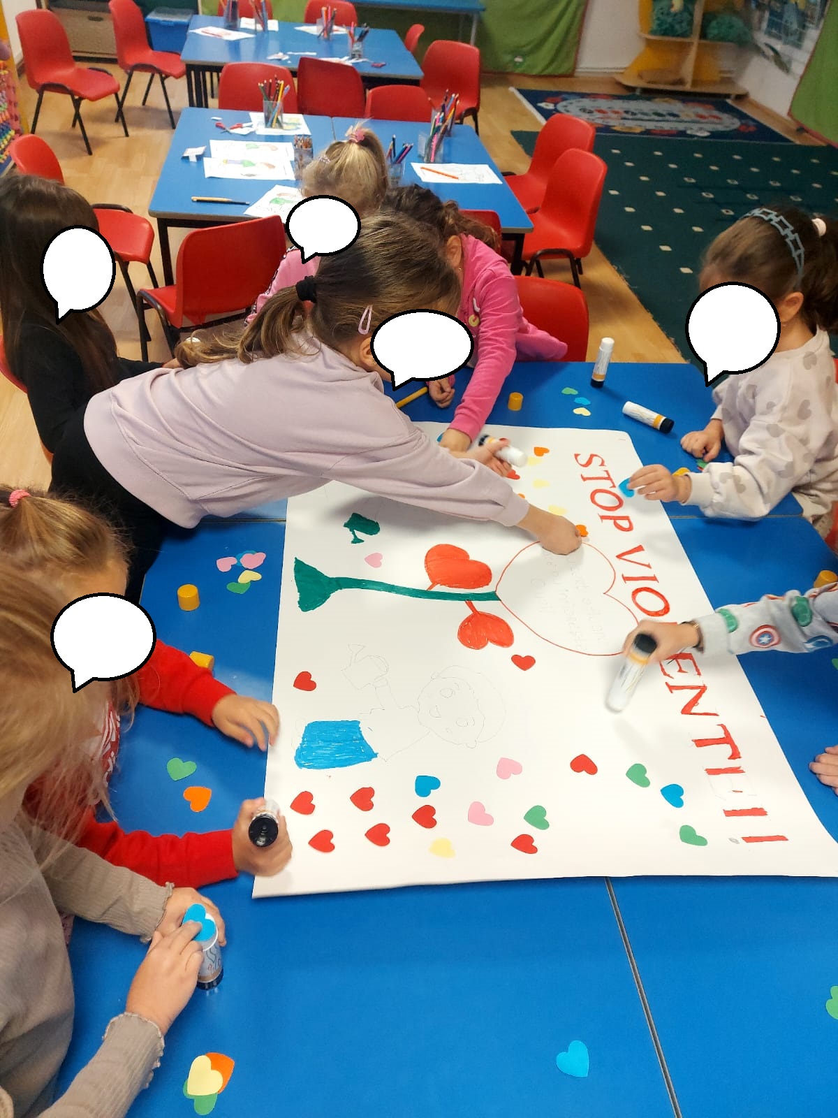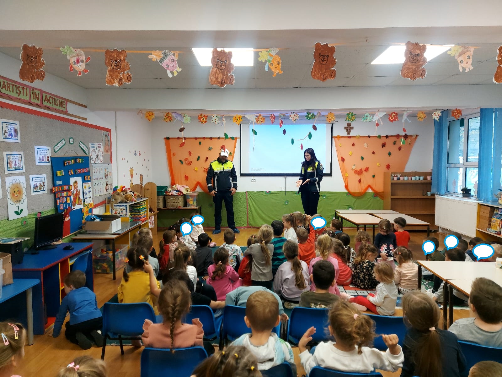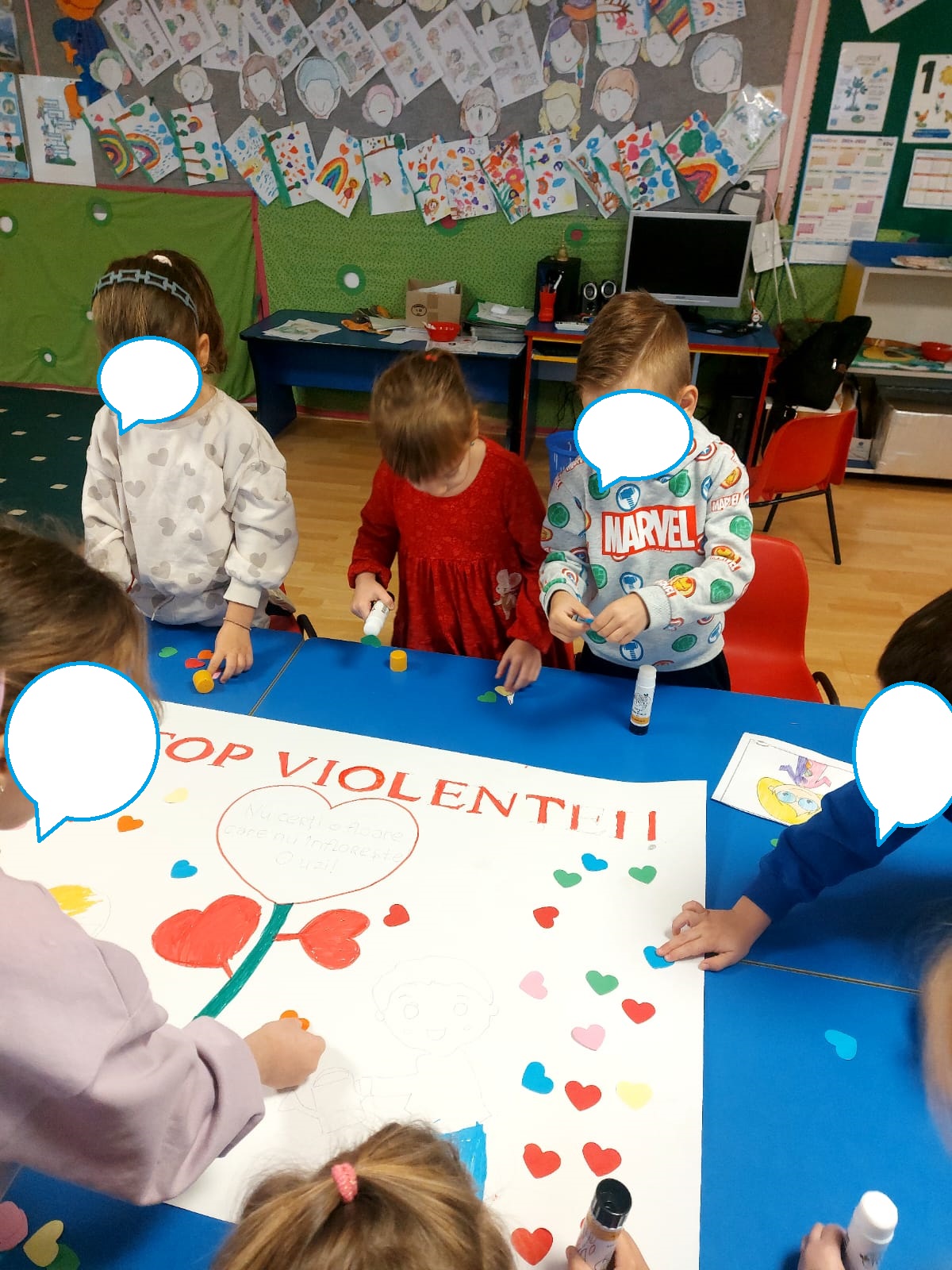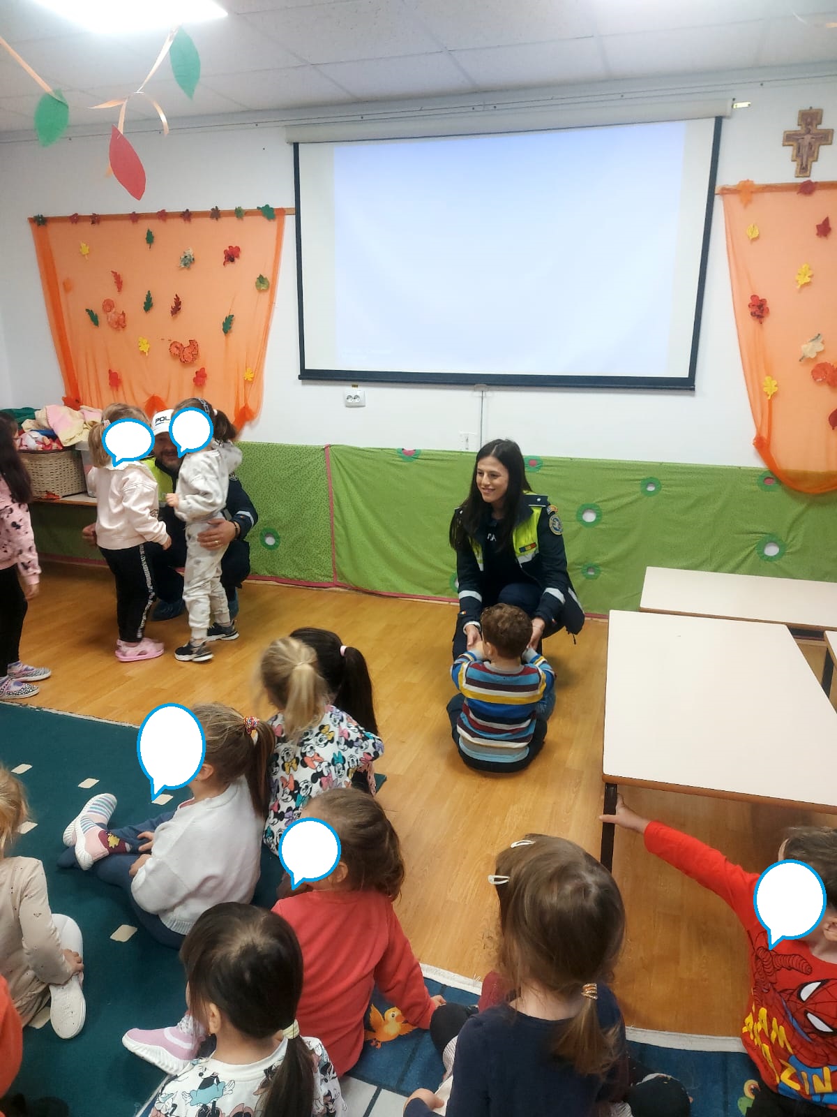 Astăzi copiii din grădinița noastră au participat la activități cu tema: „Fii inteligent, nu violent”. Aceste activități au ca scop educarea copiilor în privința importanței respectului, empatiei și comportamentului non-violent. Copiii de la toate grupele s-au bucurat de activități interactive, jocuri și discuții cu polițiști. Educatoarele i-au ajutat pe copiii să înțeleagă conceptele de cooperare, prietenie și soluționarea pașnică a conflictelor. Aceste activități contribuie la dezvoltarea unui mediu sigur în care copiii învață să se respecte reciproc și să aplice principiile de non-violență în viața de zi cu zi.