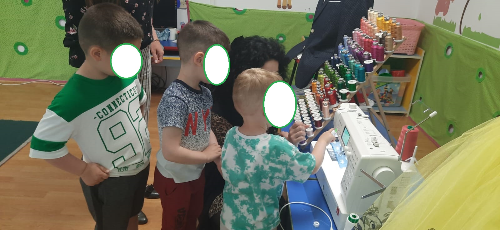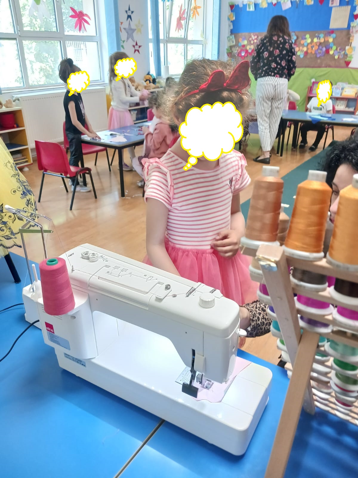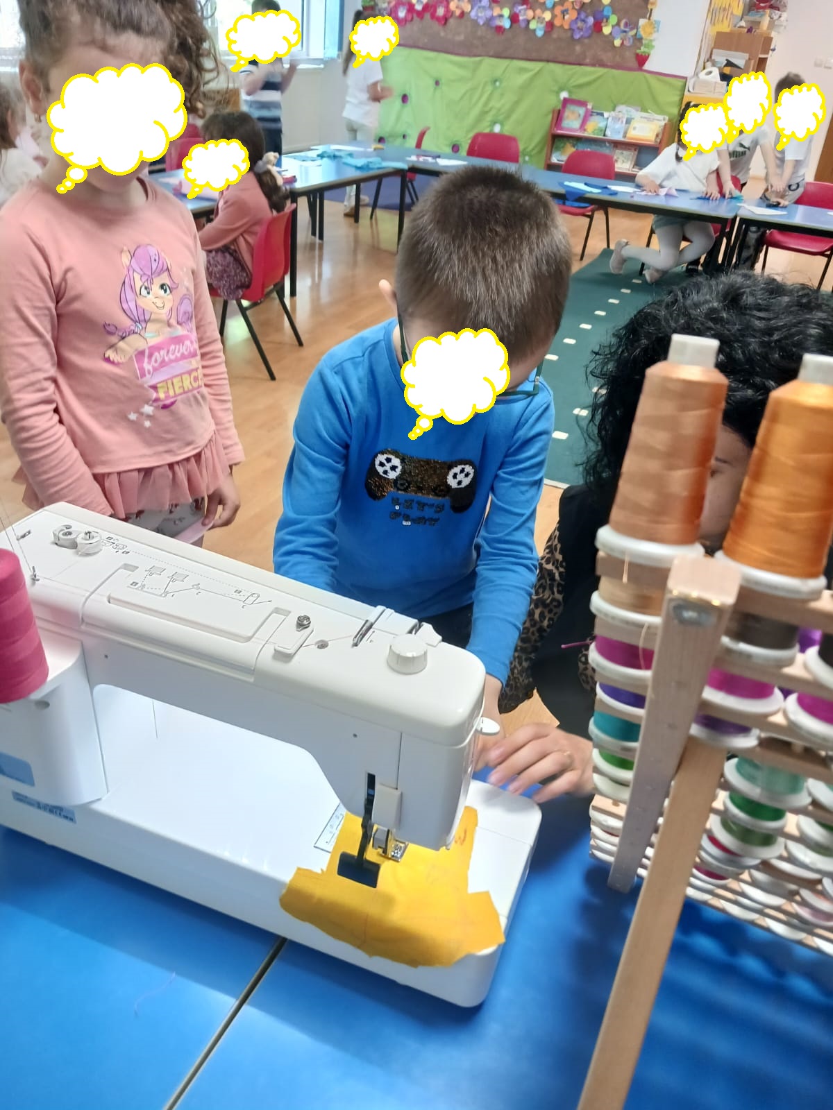 Preșcolarii au descoperit ce este serigrafia și broderia: două tehnici populare de personalizare a textilelor. Acestea oferă posibilitatea de a imprima sau de a aplica modele, imagini sau texte pe diverse produse, cum ar fi tricouri, cămăși, hanorace, pălării, genți și multe altele. Au învățat să taie după sablon, dar au experimentat si cum se coase la masina de cusut.